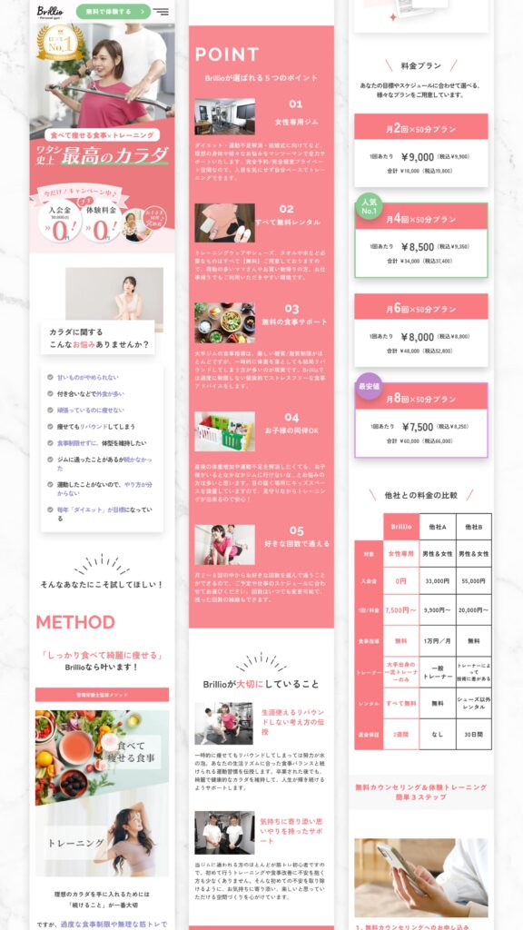 埼玉のパーソナルジムスタジオBrillio様にご依頼いただき、ランディングページのリニューアルを担当させていただきました。