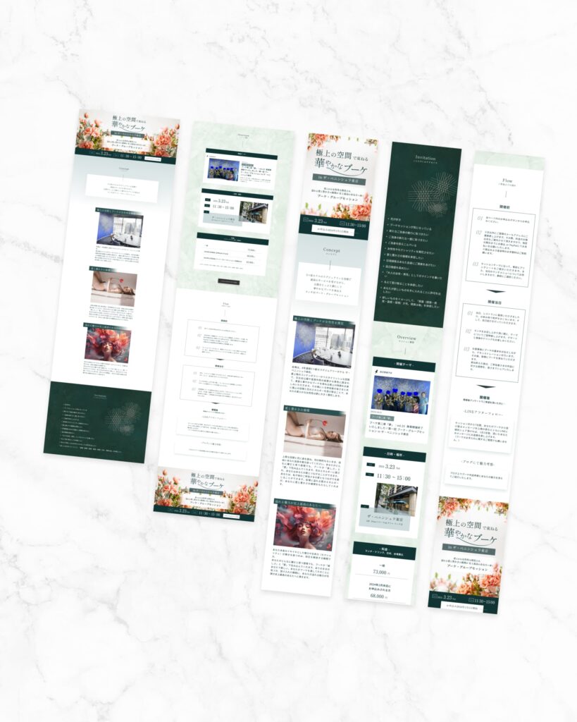 ブーケアーティスト・咲凛(えみり)さとさんにご依頼いただき、ニンシュラホテルで開催するブーケグループセッションのランディングページ(LP)を制作させていただきました。