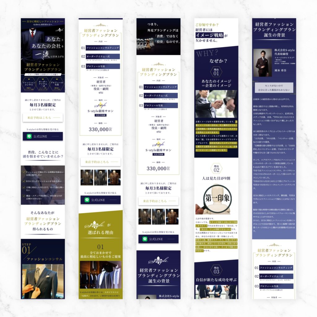 経営者御用達のオーダーメイドスーツサロン株式会社S-style様より、ファッションコンサルティング/オーダーメイドスーツ・小物一式/写真撮影がセットになったパッケージプランを展開する上で、広告用LPをご依頼頂きました。
