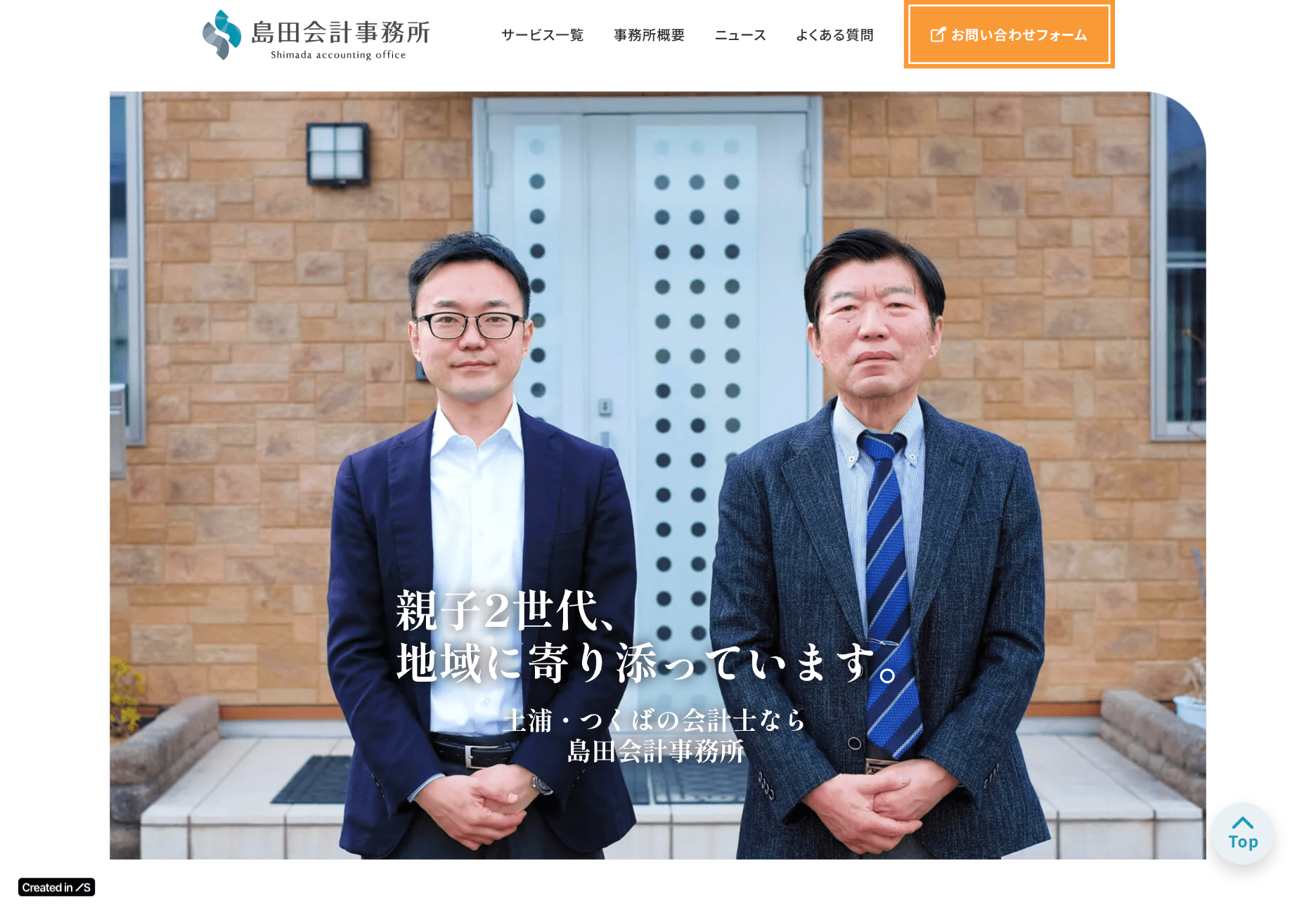 茨城で事務所を構えられる島田税理士事務所様にご依頼いただき、トップページをランディングページ(LP)風に設計したホームページ(HP)を制作させていただきました。